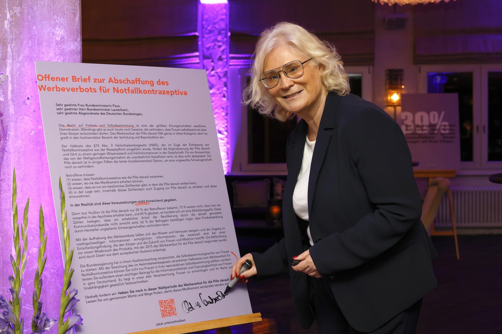Konkret richten sie den Brief an die Bundesministerin für Familie, Senioren, Frauen und Jugend, Lisa Paus (Grüne), Bundesgesundheitsminister Lauterbach sowie die Mitglieder des Deutschen Bundestages. Ihre Forderung: „Das Heilmittelwerbegesetz (HWG) anzupassen, um das Recht auf reproduktive Selbstbestimmung und körperliche Unversehrtheit von Frauen zu stärken und die Pille danach zu entstigmatisieren.“