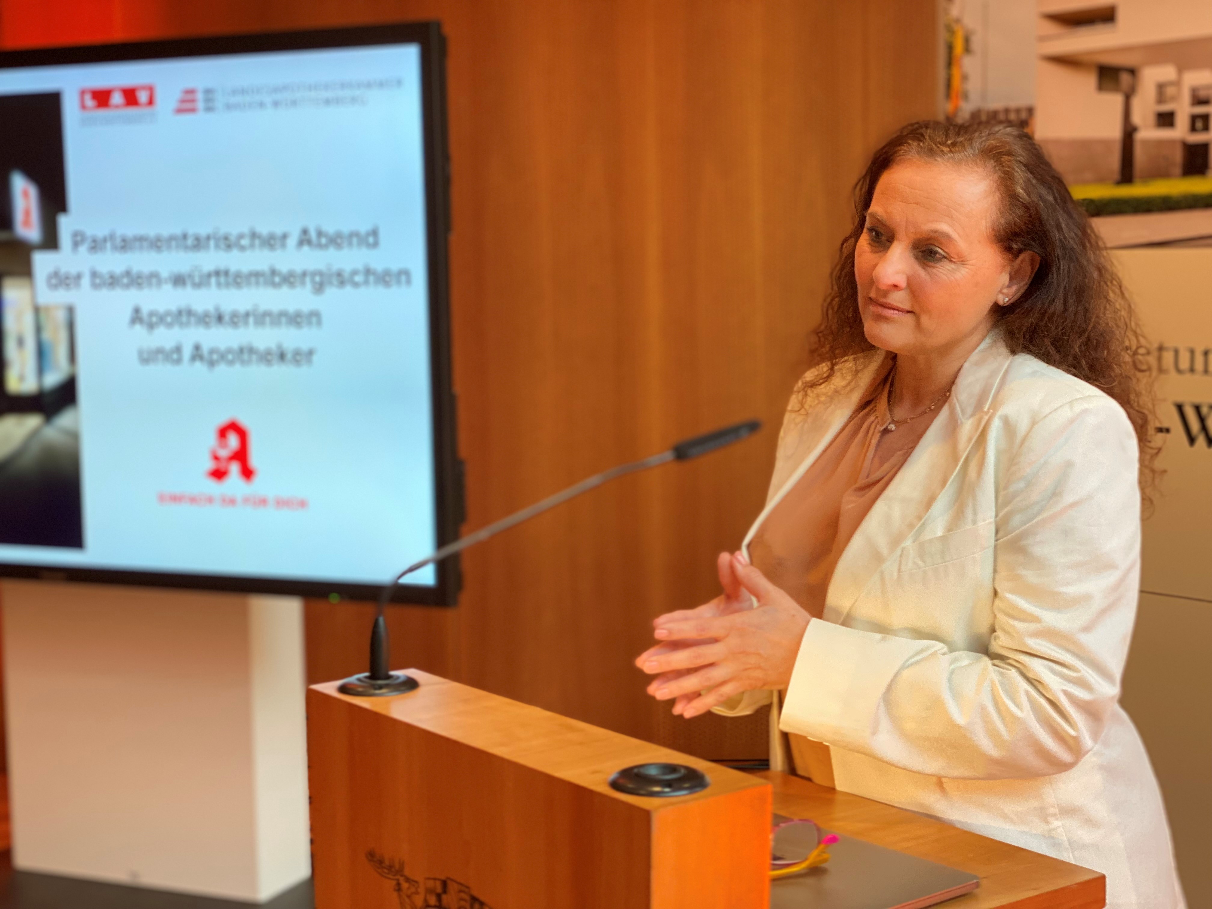 Bei ihrem parlamentarischen Abend informierten Kammer und Verband aus Baden-Württemberg die Politikerinnen und Politiker über die wirtschaftlich angespannte Lage der Apotheken. Jeder dritte Betrieb könnte in den nächsten zehn Jahren wegfallen, schon jetzt erwirtschafte jede zehnte Apotheke nach Abzug aller Betriebskosten keinen Gewinn mehr, so Verbandschefin Tatjana Zambo.