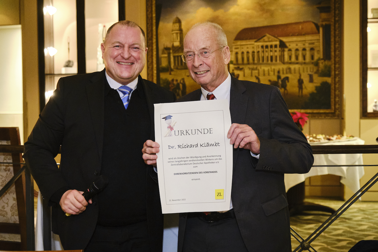 Unter der Führung des ehemaligen Präsidenten der Apothekerkammer Bremen habe sich das ZL zu einem renommierten, international anerkannten, modernen und analytisch bestens ausgestattetem unabhängigen Prüflaboratorium entwickelt. Unverkennbar seien seine Beiträge zur Qualitätssicherung von deutschen Fertigarzneimitteln, Verbesserung des Verbraucherschutzes und Optimierung der Qualität von Rezepturarzneimitteln. Hierfür wie auch für seinen vertrauensvollen Führungsstil erhielt Klämbt bei der Mitgliederversammlung viel Anerkennung und Lob durch Vorstand, wissenschaftliche Leitung wie auch der gesamten Belegschaft des ZL.