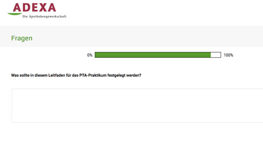 Wer eine Ausweitung des Praktikums befürwortet, wird um Vorschläge zu zusätzliche Lerninhalte gebeten, die vermittelt werden sollten. Die Adexa will ebenfalls wissen, ob ein praktikumsbegleitender Unterricht für notwendig befunden wird. Wenn ja – in welchen Abständen soll dieser abgehalten werden? Wöchentlich oder als Block wie bei den Pharmazeuten. Wichtig ist auch die Frage, welche Inhalte unterrichtet und somit für den Apothekenalltag vertieft werden sollten. Zu Wahl stehen eine Vertiefung der Selbstmedikation, alternative Heilmethoden wie die Homöopathie, Gesetzeskunde und Kommunikation. Überlegt wird auch ein bundesweiter verbindlicher Leitfaden das PTA-Praktikum. Welche Inhalte sollten festgehalten werden, will die Adexa wissen.