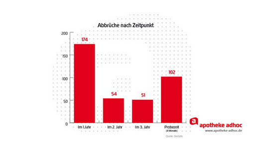 Eine Statistik offenbart, dass relativ viele Verträge vorzeitig gelöst werden. 2016 entschieden sich insgesamt 279 PKA-Schüler – 255 Frauen und 24 Männer – ihre Ausbildung abzubrechen, 174 davon bereits im ersten Ausbildungsjahr oder sogar noch in der Probezeit. In zweiten und dritten Ausbildungsjahr war die Zahl der Abbrecher mit je 54 und 51 vorzeitig aufgelösten Verträgen deutlich niedriger.