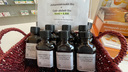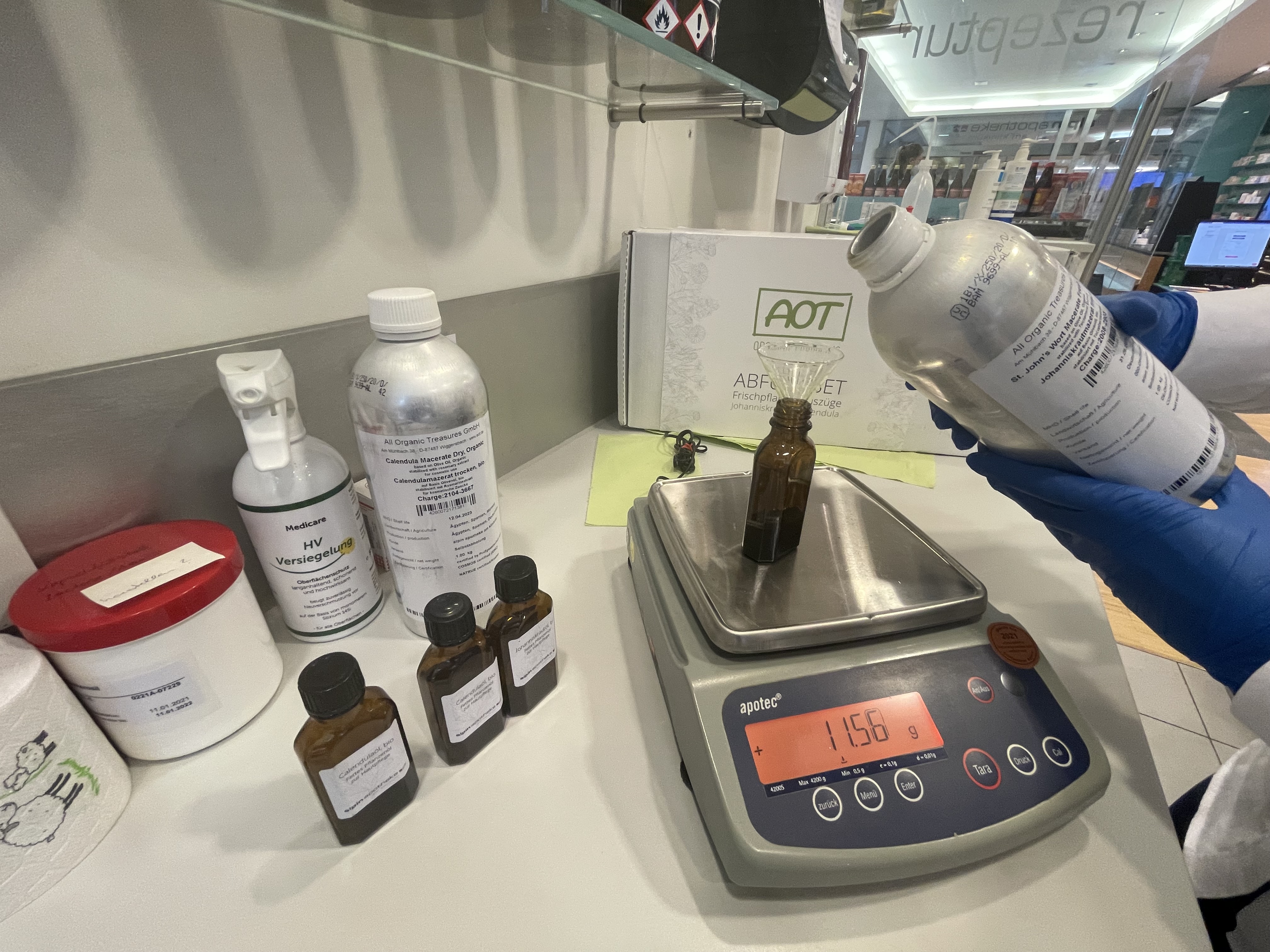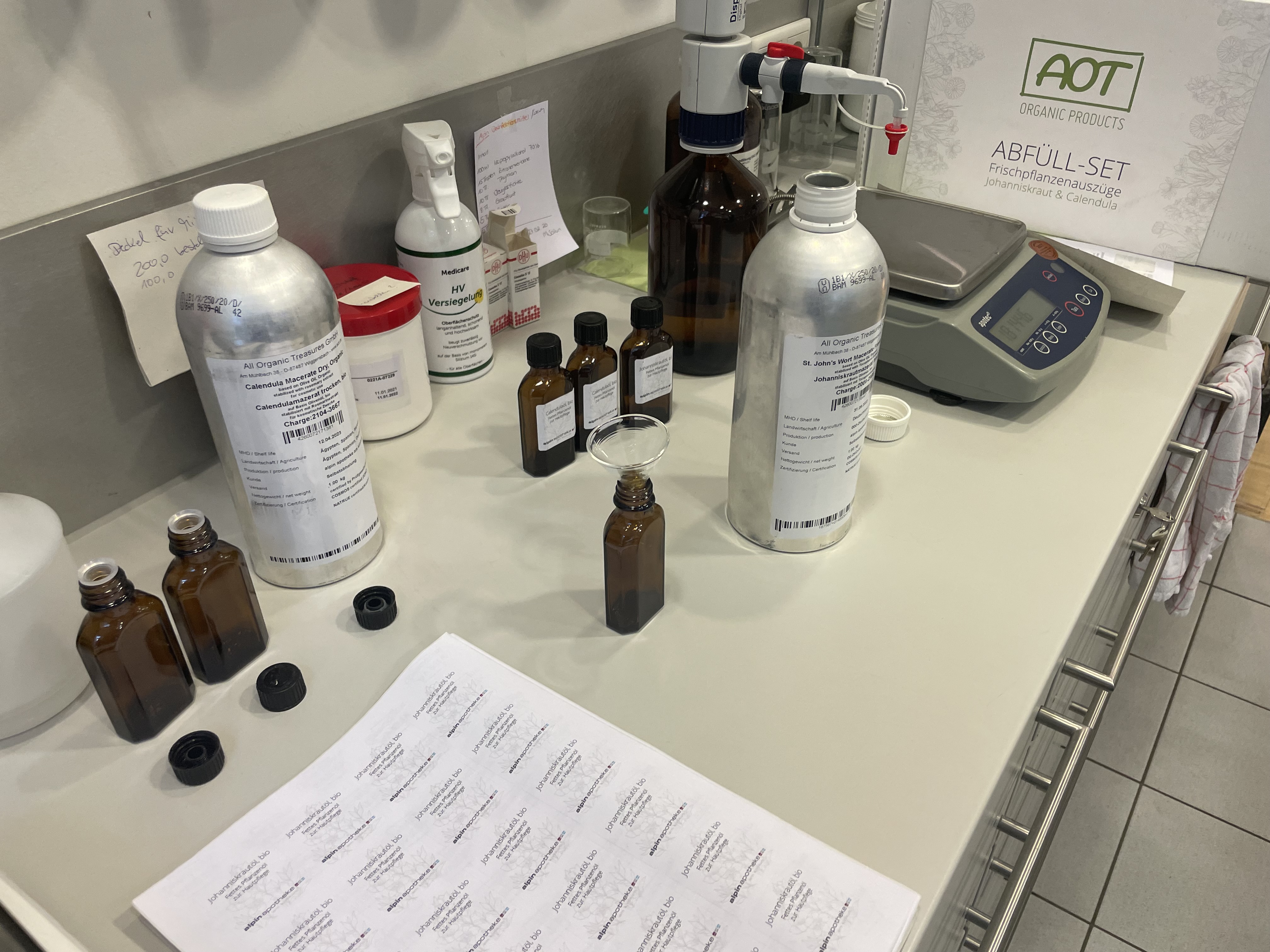 Gemeinsam mit dem Vertriebspartner Allgäu OTC wurde nun ein Abfüllset mit Frischpflanzenauszügen von Calendula und Johanniskraut erstellt. Damit können Apotheken die Frischpflanzenauszüge direkt vor Ort abfüllen, um höchste Qualität zu liefern. Haltbar sind sie bis zu 24 Monate ab Abfülldatum. Die Apotheke nutzt Bulkware und kann die Öle mit einer eigenen Chargennummer in den Verkehr bringen.