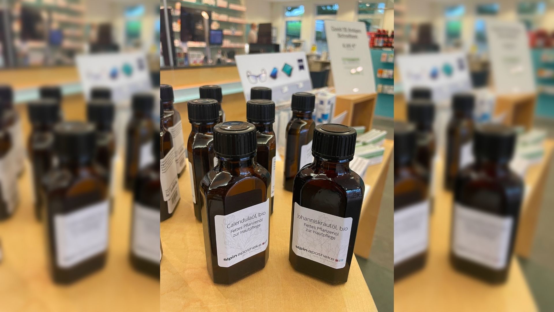 Angeboten werden die Öle und Mazerate in der klassischen Braunglasflasche. „Wir haben bewusst auf designte Flaschen verzichtet. Wir wollen den Charakter der Apotheke zusätzlich unterstreichen, indem wir klassische Braunglasflaschen anbieten – so wie wir sie seit Jahrzehnten aus der Apotheke kennen.“