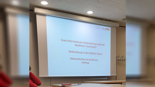 Die Schulung ist als Präsenzveranstaltung durchgeführt worden. Im Raum sind die Fenster geöffnet und in der Ecke steht ein großer Raumluftreiniger. Auf den Plätzen rund 15 PTA, zwei davon mit Sterilerfahrung, zwei Krankenschwestern und ein Arzt. In anderthalb Stunden erklären die beiden Pharmazeuten die Aufbereitung des mRNA-Impfstoffes Schritt für Schritt.