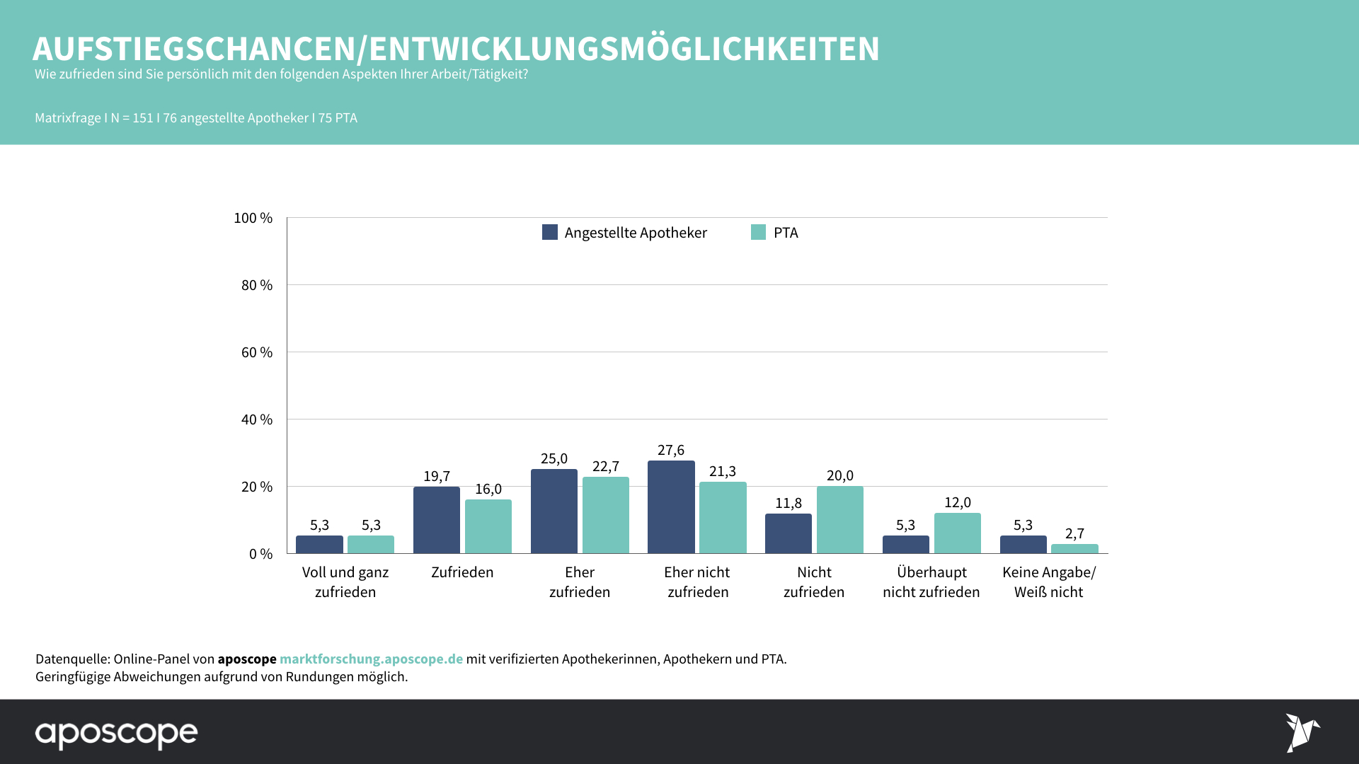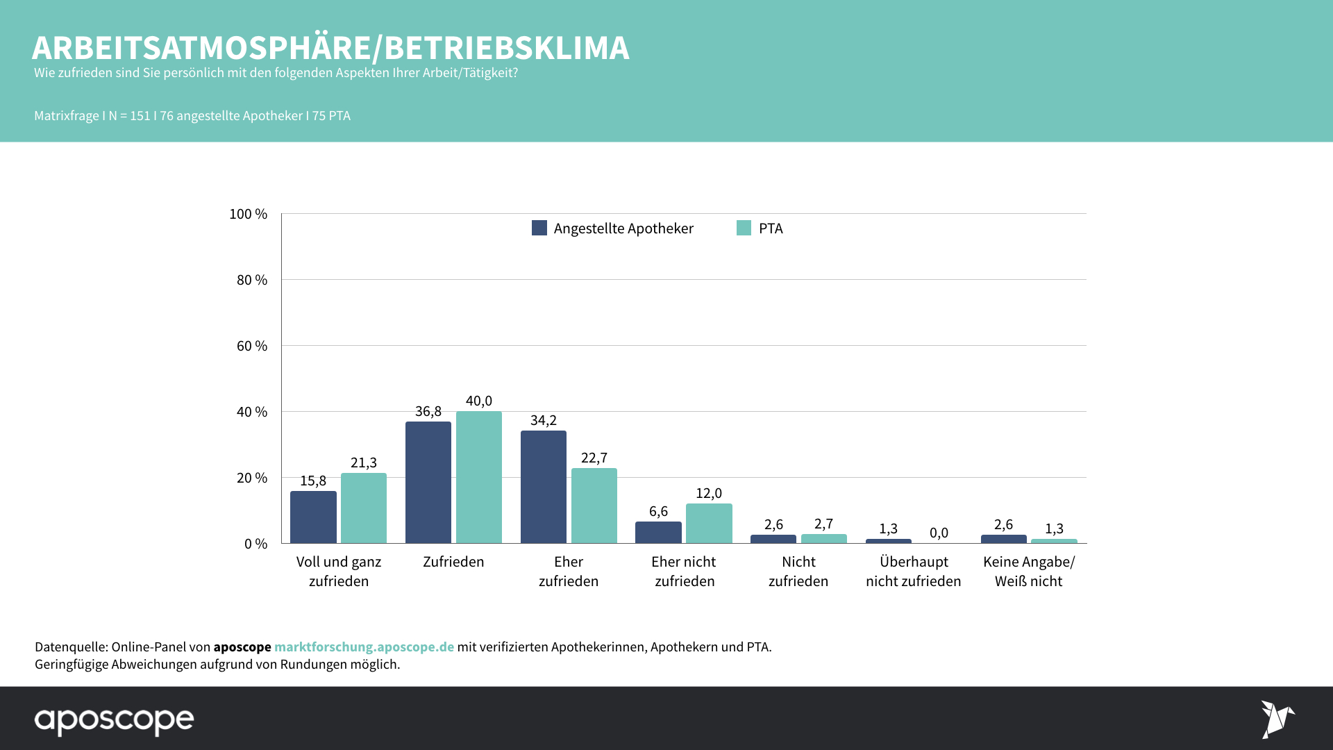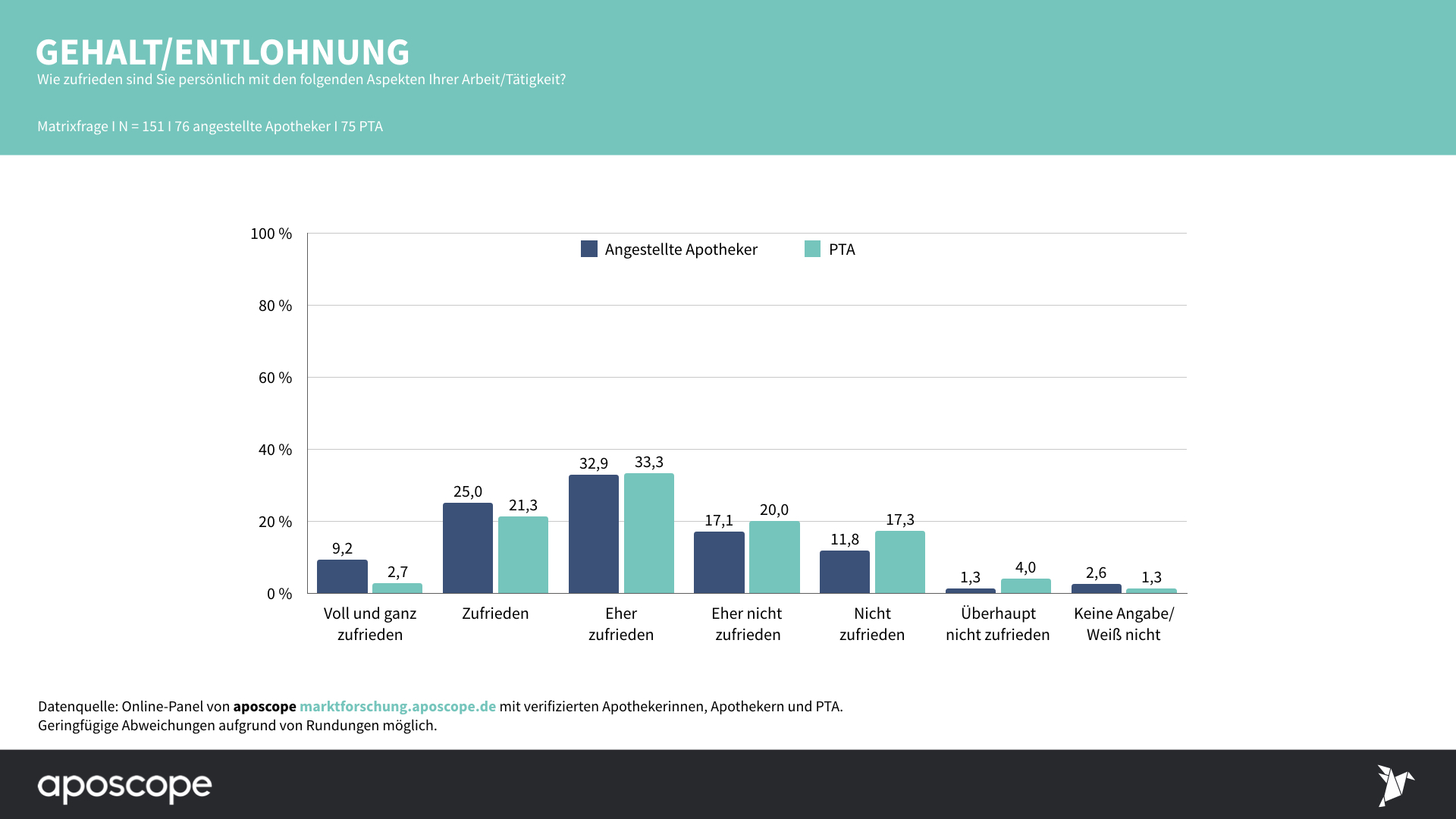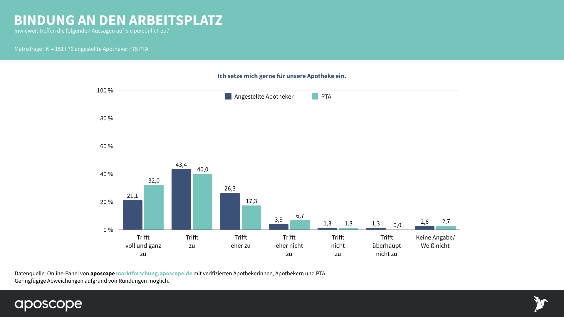 An der apscope-Umfrage nahmen am 28. Januar 151 verifizierte angestellte Apotheker und PTA teil.