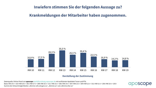 aposcope befragt seit dem 25. Februar 2020 jede Woche verifizierte Apotheker und PTA online zum Thema Coronavirus. An der aktuellen Umfrage zur „Zahl der Woche“ nahmen am 6. und 7. Mai 2020 insgesamt 310 Apotheker und PTA teil. Die Umfrage ist repräsentativ für die deutsche Apothekenlandschaft.