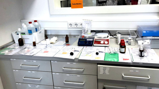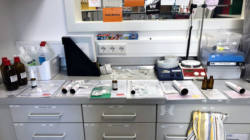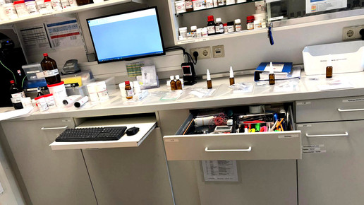 „Wenn es Schwierigkeiten mit einer Rezeptur gibt, halten wir immer Rücksprache mit dem Arzt. Wir sind bemüht, immer die beste Lösung für den Patienten zu finden.“ Das kostet häufig viel Zeit, deshalb ist es aktuell sehr ärgerlich, dass die zunehmenden Dermatika-Verordnungen häufig nicht plausibel sind, so Tabea. Um die Arbeitsabläufe immer weiter zu optimieren, erweitert die PTA das Inventar der Rezeptur fortlaufend: „Wir haben in den letzten Monaten zahlreiche neue Geräte für die Rezeptur gekauft, darunter auch ein Rotationsverdampfer für unsere Cannabisherstellungen.“