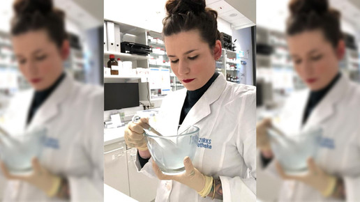Tabea hat sich auf die Arbeit in der Rezeptur spezialisiert, im Handverkauf arbeitet sie nur noch ab und an. Auch für die Ausbildung der PTA- und Pharmaziepraktikanten ist sie zuständig. „Jeder Praktikant bekommt am Beginn seines Praktikums einen Einarbeitungsordner, den er – je nach Abteilung – mit seinem Mentor durchgeht. Auch die Rezeptur ist Teil des PJ. Hier arbeite ich die angehenden Apotheker und PTA-Praktikanten ein.“ Das macht ihr richtig Spaß. Um die Praktikanten auf den Apothekenalltag, fernab von plausiblen NRF-Rezepturen, vorzubereiten, hat die PTA einen eigenen Einarbeitungsordner angelegt. „Ich habe mir verschiedene problematische Rezepturen exemplarisch überlegt, sodass die Praktikanten später eigenständig Plausibilitätsprüfungen erarbeiten können.“