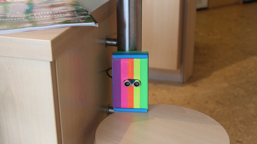 Der Paxcounter ermöglicht es zeitnah, Besucherzahlen zu erfassen. Über WIFI oder Bluetooth zählt er die Signale der sich im Umfeld befindlichen Geräte. Ideal ist das Gerät für die Messungen in größeren Ladengeschäften oder Veranstaltungsräumen, um bei der Überschreitung der zulässigen Besucherzahl schnell zu reagieren. An einem HV-Tisch der Apotheke ist nun ein buntes Kästchen in Neonfarben zu sehen: Dieser ausgestellte Ultraschall-Abstandsensor sorgt dafür, dass der Mindestabstand zwischen Wartenden und dem Verkaufspersonal eigehalten wird. Wird der Sicherheitsabstand von 50 cm zur Plexiglasscheibe nicht beachtet, ertönt ein Piep-Geräusch – ähnlich dem eines EKGs.