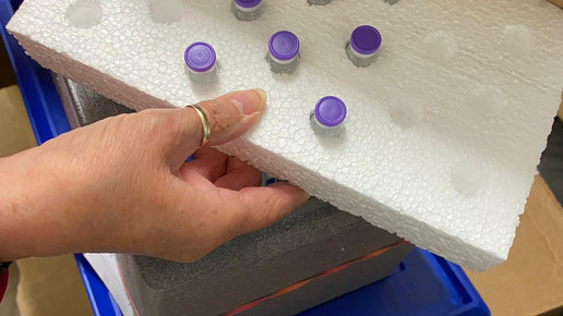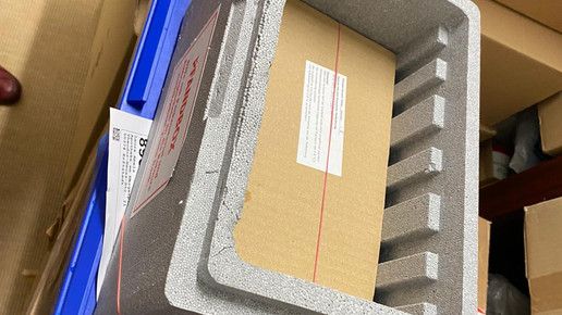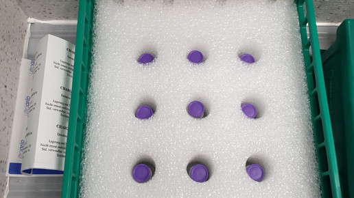 Improvisiert wurde auch in der Münchener Niederlassung von Hageda: Die Vials waren in ausgestanzten Pappen voneinander getrennt und mit Klebestreifen befestigt. Etwas improvisiert kam Apothekerin Sabine Weiß das Ganze vor. Aber sicher und gekühlt waren die Vials, also findet sie die Lösung zum Start in Ordnung. Nur dass die Lieferung anderthalb Stunden zu spät kam, brachte die geplanten Abläufe etwas durcheinander. Am Ende klappte alles: Von den acht bestellten Fläschchen wurden fünf geliefert und an die Ärzte weitergegeben.