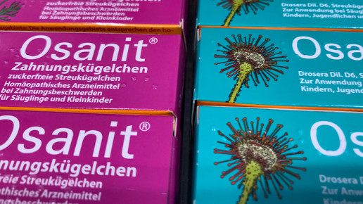 Weitaus bekannter als Osa ist das homöopathische Komplexmittel Osanit. Denn viele Eltern greifen neben lokal anzuwendenden Mundgelen außerdem zu Homöopathie. Höchstens sechsmal täglich können die Globuli gegeben werden. Dabei werden bis zu acht Kügelchen mit Kamille, Calcium-, Magnesium- und Eisen phosphoricum sowie Calcium carbonicum Hahnemanni verabreicht. Homöopathische Präparate stehen auch als Zäpfchen zur Verfügung: Die Fieber- und Zahnungszäpfchen von Weleda und Viburcol (Heel) sind die bekanntesten Vertreter. Das Weleda-Produkt sollte jedoch nicht bei Kindern unter einem Jahr angewendet werden.