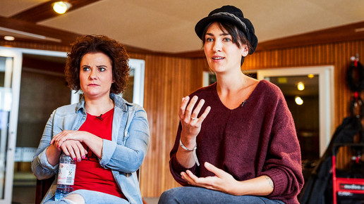 Die Finalistinnen Dana und Julia (v.l.) freuen sich über Feedback.Foto: Marcus Golejewski