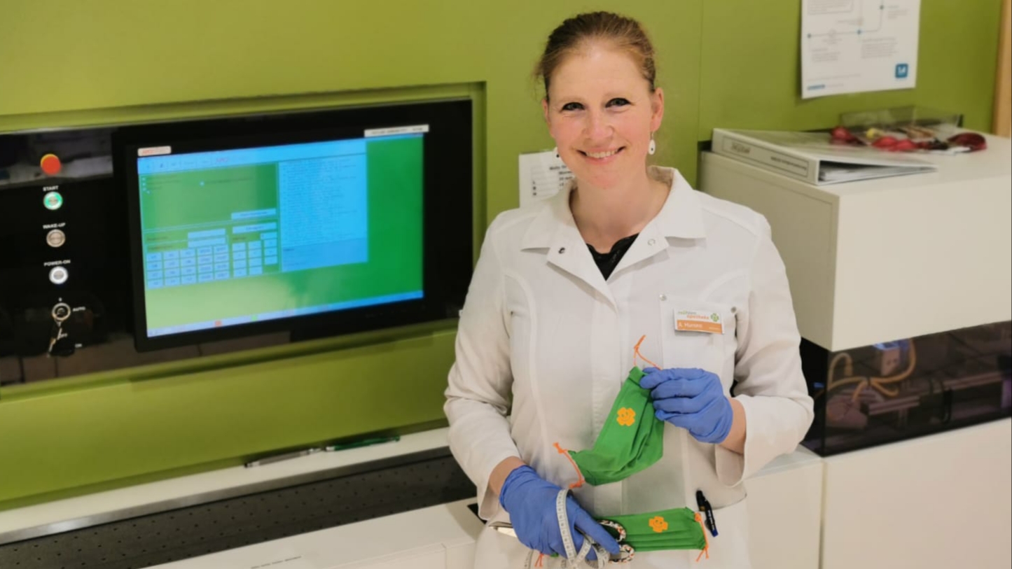Die Mühlen-Apotheken in Neumünster haben aus der Not eine Tugend gemacht: Atemmasken sind kaum noch zu bekommen und viele Vollzeitkräfte kommen derzeit kaum auf ihre Stunden. Apothekerin Antonie Hansen hatte deshalb eine Idee: Abends sitzt sie nach der Arbeit zuhause und näht Atemmasken für das ganze Team – in den Farben der Apotheke und mit ihrem Logo gebrandet. Das hilft nicht nur, sondern macht auch einen guten Eindruck auf die Kunden.