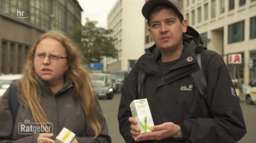 Sind günstige Produkte aus der Drogerie genauso gut wie die teureren aus der Apotheke? Das will der Sender in dem Bericht wissen. Für den Beitrag werden zunächst mehrere Passanten befragt, wo sie überhaupt Arzneimittel beziehen. „Medikamente kaufe ich in der Apotheke. Da frage ich nach, da fühle ich mich irgendwie aufgehobener“, sagt eine Frau. Von der Familie sei es traditionell weitergegeben worden, bei Arzneimitteln in die Apotheke zu gehen, sagt ein anderer. „In der Apotheke hat man da so ein Urvertrauen“, stellt ein weiterer Befragter fest.