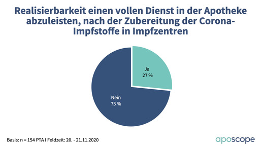 Mit dem ungewöhnlichen Vorschlag, PTA mit der Zubereitung der Corona-Impfstoffe zu betrauen, hat das Gesundheitsministerium in Schleswig-Holstein für eine kontroverse Diskussion gesorgt. Zahlreiche PTA stehen einem solchen Einsatz in den Impfzentren erstaunlich aufgeschlossen gegenüber, wie eine aktuelle Umfrage von aposcope zeigt.