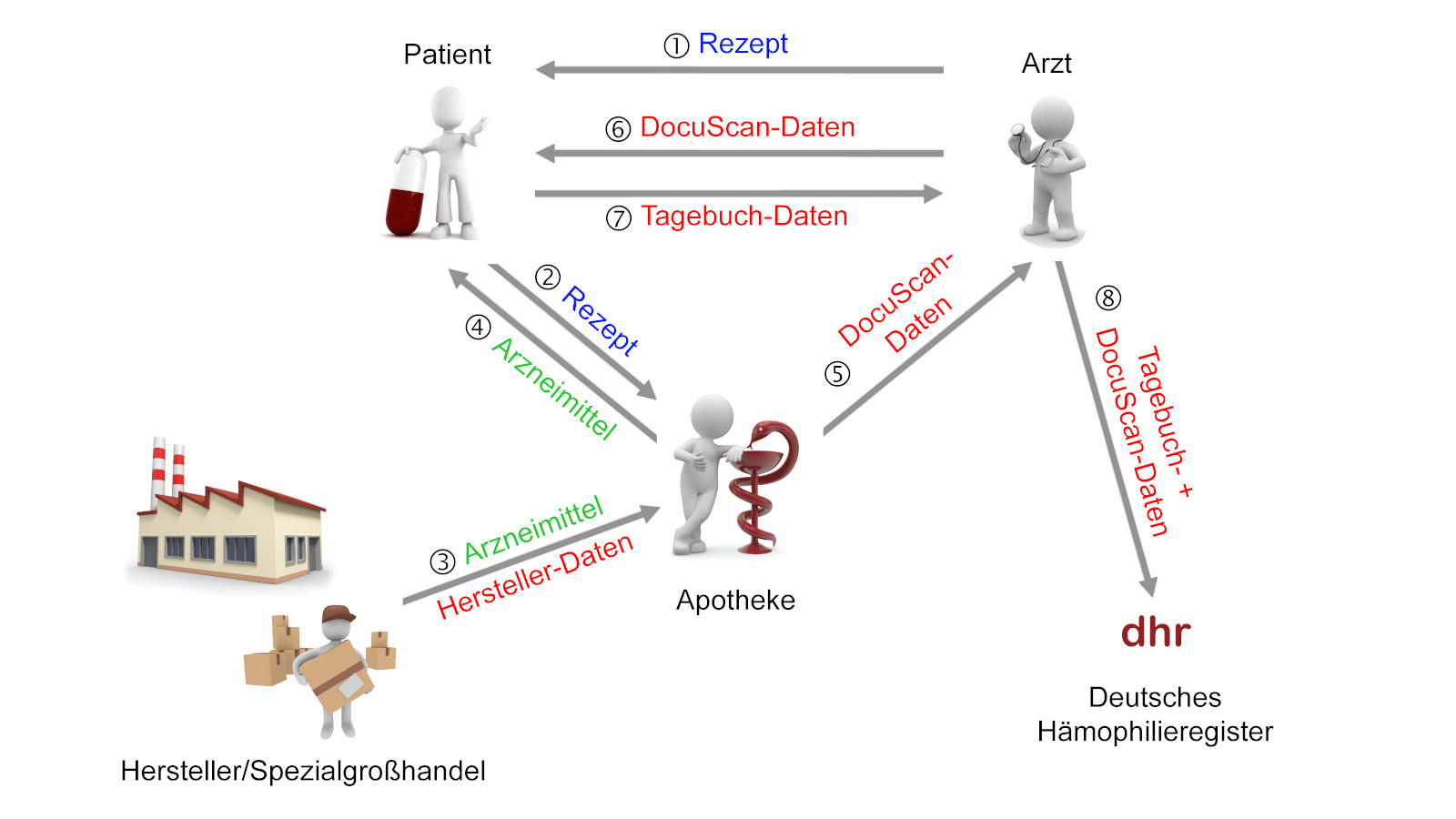 Der Arzt muss die von der Apotheke gemeldeten Daten an das Deutsche Hämophilie-Register (DHR) gemäß § 21 des Transfusionsgesetzes (TFG) weiterleiten. Das DHR sammelt seit 2008 die entsprechenden Daten und wird vom Paul-Ehrlich-Institut geführt.
