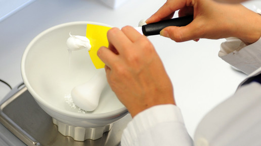 Die Herstellung von halbfesten Zubereitungen gehört zum täglichen Geschäft. Nicht alle Rezepturen können in einem geschlossenen Rührsystem hergestellt werden. Ist noch echte Handarbeit im klassischen Sinn gefragt, wird in einer Fantaschale hergestellt. Melamin-Schalen gehören jedoch der Vergangenheit an.