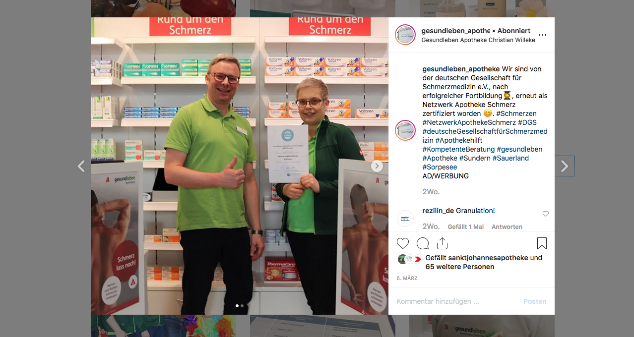 Gehe bietet die Schulung ab Dienstag an zehn Terminen in verschiedenen Städten an. In zweieinhalb Stunden wollen Hakan Simsek, Gehe-Projektleiter Onlinemedien, und Chris Günter von der Werbeagentur Caesar Gustav die Teilnehmer zu „waschechten Influencern“ machen. „Heute sind es immer häufiger Menschen aus dem direkten Umfeld, die den entscheidenden Einfluss auf Kaufentscheidungen der Kunden haben“, sagt ein Sprecher. Influencing sei eine Möglichkeit für die Vor-Ort-Apotheke, von dieser Entwicklung zu profitieren.