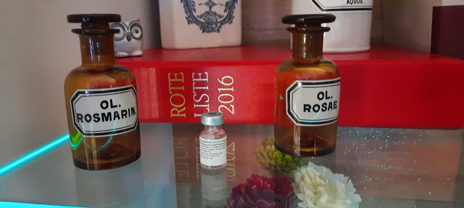 Auch wenn die Aktion in gewisser Weise ein Sprung ins kalte Wasser war, ist Nicole froh darüber. „Es war ganz gut so, denn so konnte ich mich nicht ewig verrückt machen. Ich bin nun gespannt, wie ich die zweite Dosis vertrage.“ Wenn sie den Impfschutz vervollständigt hat, möchte Nicole gerne an den Wochenenden im Impfzentrum aushelfen, um auch andere mit der Vakzine versorgen zu können. Als Andenken an ihre eigene erste Impfstoff-Dosis hat sie sich eins der leeren Vials aufgehoben. „Das steht nun bei mir im Wohnzimmerschrank und wird mich immer an diesen Tag erinnern.“