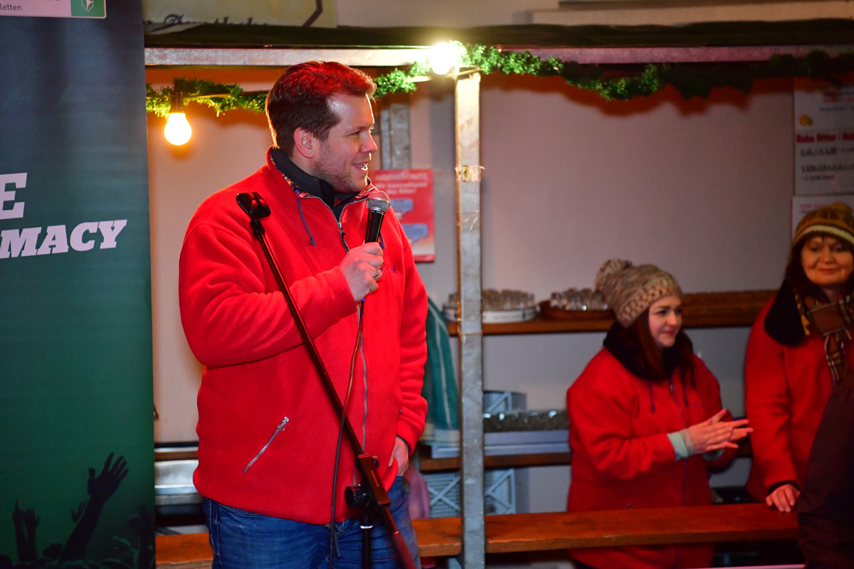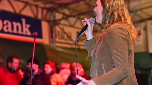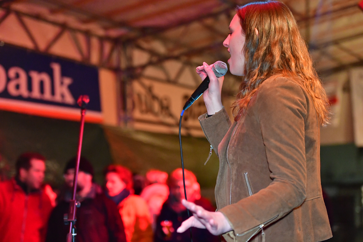 Kim trat im Rahmen von „Pop meets Pharmacy“ diesmal open-air auf, eine Herausforderung im Winter. Auf der Kirmes „Gertrüdchen“ sang sie unter anderem ihren eigenen Song „Butterflies“, „Use somebody“ von Kings of Leon oder „Ex´s and Oh´s“ von Elle King. Danach gab es zum Aufwärmen ein Gläschen, empfohlen vom Apotheker. Drei Tage im Jahr darf Simons selbst gemachten Schnaps verkaufen.