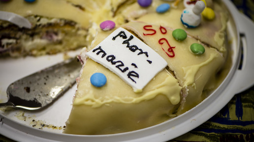 Silke Laubscher, Vizepräsidentin der Landesapothekerkammer, eröffnete die Feier mit einer Festrede. Anschließend folgte ein Vortrag von Philipp Ziser zur Partnerschaft mit dem ostafrikanischen Land Burundi unter dem Aspekt „PTA-Ausbildung in Burundi – ein bisschen anders“. Zeiser gehört der Organisation „Burundikids“ an, die regelmäßig durch den Verkauf von Kuchen durch die Schüler der Kerschensteinschule unterstützt wird. Auch an diesem besonderen Tag verkauften die Schüler zahlreiche Kuchen im schuleigenen „Burundicafé“, um Geld für die Organisation zu sammeln.