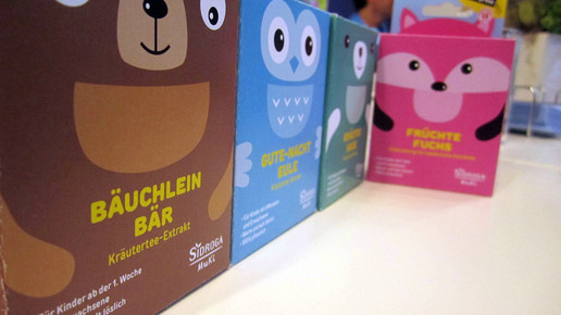 Daher kommen viele Eltern in die Apotheke, um ein gesundes Produkt zu erwerben. Es finden sich hier einige Anbieter in den Regalen, die spezielle Mischungen für Kinder herstellen. Die großen Anbieter H&S und Sidroga haben eine ganze Palette an Kinder- und Säuglingstees im Sortiment. Von der Strathos-Tochter kam in diesem Jahr eine Neuentwicklung: die Teexpress-Serie mit vier verschiedenen Instant-Tees, die speziell für Kinder entwickelt wurden. Im Gegensatz zu den herkömmlichen Teebeuteln soll die Zubereitung einfacher und schneller sein. Sie enthalten keine Träger- und Aromastoffe, keinen zugesetzten Zucker oder künstlichen Aromastoffe. Die Sticks lassen sich unterwegs mitnehmen und ihr Inhalt löst sich sowohl im heißen als auch in kaltem Wasser. Dabei kann die Sorte „Bäuchlein Bär“ bereits ab der ersten Lebenswoche eingesetzt werden, die Sorten „Gute-Nacht Eule“ und „Kräuter Hase“ ab vier Monaten und der „Früchte Fuchs“ ab einem Jahr.
