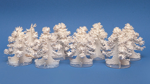 Auf der Pappe bilden sich nach kurzer Zeit die ersten Kristalle an den Spitzen des Bäumchens. Nach rund zwölf Stunden ist das Kristallwachstum abgeschlossen und der „ChemisTree“ ist fertig.