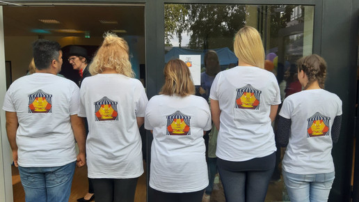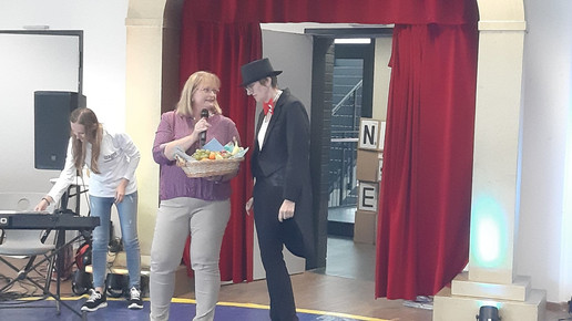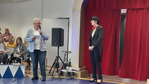 Den Großteil der Planung übernahmen Schulleiterin Hußmann und Kollegin Ingrid Maier-Bode-Gennen: Als Dank gab es einen großen Blumenstrauß von den Kollegen. Es seien aber auch viele Kleinigkeiten gewesen, die die Vorbereitungen ausgemacht hätten: „Wir haben zwei Tage Luftballons aufgepustet“, lacht Castenholz. Die Manege sei schon am Vortag angeliefert worden, die Zelte jedoch erst unmittelbar am Tag der Feier.
