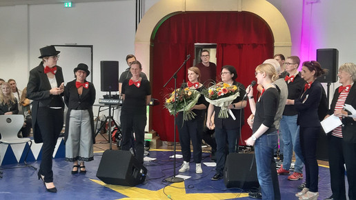 Das abwechslungsreiche Programm wurde vom Lehrerchor beendet, welcher sich mit seiner Darbietung bei den Schülern und Förderern „op kölsch“ bedankte. „Alle haben eifrig mitgearbeitet“, erklärte Hußmann. Das sei nicht selbstverständlich und oft sei die Planung und Umsetzung auch über die Grenzen des Unterrichts hinaus gegangen und sogar in den Ferien gearbeitet worden. Nachdem die Planung anfangs etwas schleppend gewesen sei, hätten zum Schluss alle super mitgezogen und man wäre ein eingespieltes Team geworden.