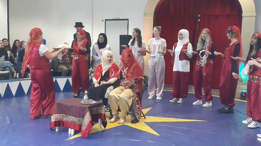 Für das Fest wurde die Aula der Schule kurzerhand zur Manege umfunktioniert: Dem Publikum wurde fünf Stunden lang ein abwechslungsreiches Programm aus Vorführungen, Modenschauen, Experimenten und musikalischen Beiträgen von Schülern und Lehrkräften geboten. Aufgrund der vielen vertretenen Kulturen an der Lehranstalt gab es ebenfalls einen Einblick in die Traditionen anderer Länder: Bei der „Modenschau der Nationen“ präsentierten die Schülerinnen verschiedene Trachten und typische Kleidung, außerdem wurde eine Henna-Nacht inszeniert. „Auch wir als Lehrer lernen noch viel von den Kulturen“, erklärte Schulleiterin Dagmar Hußmann.