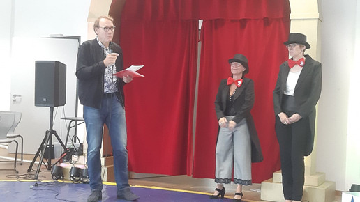 Ein Grußwort gab es unter anderem von der Apothekerkammer Nordrhein: Dörte Lange übermittelte im Namen des Vorstandes die Glückwünsche zum Jubiläum. Passend zum Zirkus-Motto wünschte sie der Lehranstalt „immer genügend junge, wilde Tiere und Dompteure, die Ihnen die Kunststücke der Pharmazie beibringen“. Weitere Glückwünsche gab es von Thomas Preis, Vorsitzender des Apothekerverbandes. Die Freude über die erfolgreiche PTA Schule in der Domstadt sei groß und das Motto gut gewählt: Schließlich gleiche die Offizin oft auch einer Manege: Wie ein Akrobat stehe man als PTA im Scheinwerferlicht.
