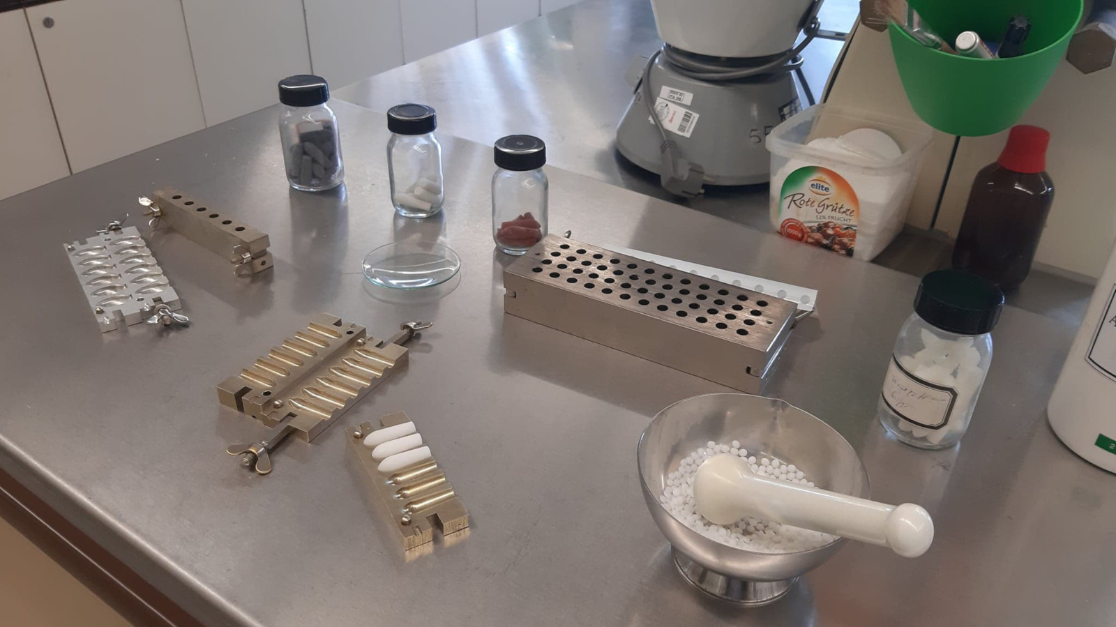 Eine Besonderheit an der Kölner Lehrakademie ist der Semesterbetrieb: Die Ausbildung ist in vier Halbjahre gegliedert. In jedem Semester unterstützt Klosterfrau einige Stipendiaten und bezahlt deren Schulgeld. „Voraussetzung dafür ist jedoch die Arbeit in einer Apotheke“, erklärt Castenholz. Mindestens vier Stunden pro Woche müssen die Stipendiaten in einer öffentlichen Apotheke ableisten. Zum Jubiläum gab es von Geschäftsführer Hans-Helmut Fabry und Christian Heller einen Scheck in Höhe von 2000 Euro für die Lehranstalt.