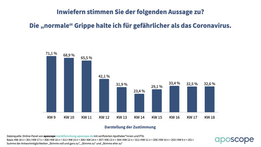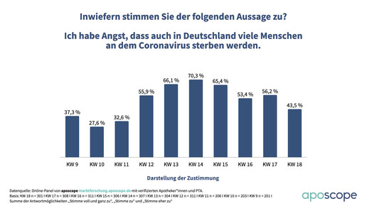 aposcope befragt seit dem 25. Februar 2020 jede Woche verifizierte Apotheker und PTA online zum Thema Coronavirus. An der aktuellen Umfrage zur „Zahl der Woche“ nahmen am 29. und 30. April 2020 insgesamt 301 Apotheker und PTA teil. Die Umfrage ist repräsentativ für die deutsche Apothekenlandschaft.