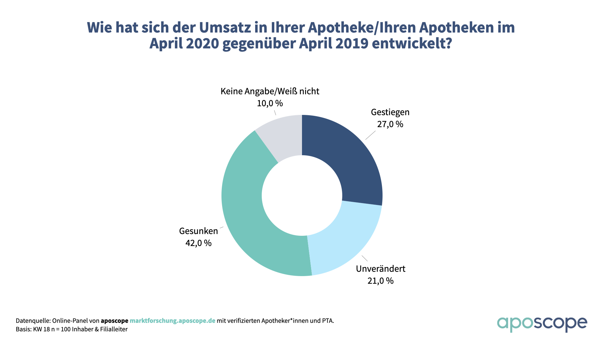 aposcope befragt seit dem 25. Februar 2020 jede Woche verifizierte Apotheker und PTA online zum Thema Coronavirus. An der aktuellen Umfrage zur „Zahl der Woche“ nahmen am 29. und 30. April 2020 insgesamt 301 Apotheker und PTA teil. Die Umfrage ist repräsentativ für die deutsche Apothekenlandschaft.