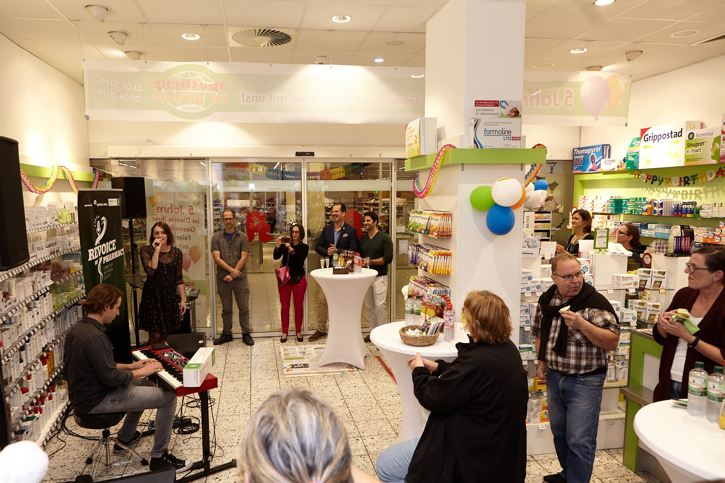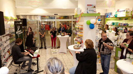 Gleich fünf Tage Programm gab es in der Apotheke im Globus. Sektempfang, Gewinnspiele und Familientag: Vieles ließen sich Filialleiter Hamid Akhavanpoor und sein Team einfallen, um das fünfjährige Jubiläum gebührend zu feiern. Den Höhepunkt bildete das Konzert von Kim. „Es war perfekt. Sie hat eine wirklich super Stimme“, freut sich Akhavanpoor über den Auftritt der jungen PTA.
