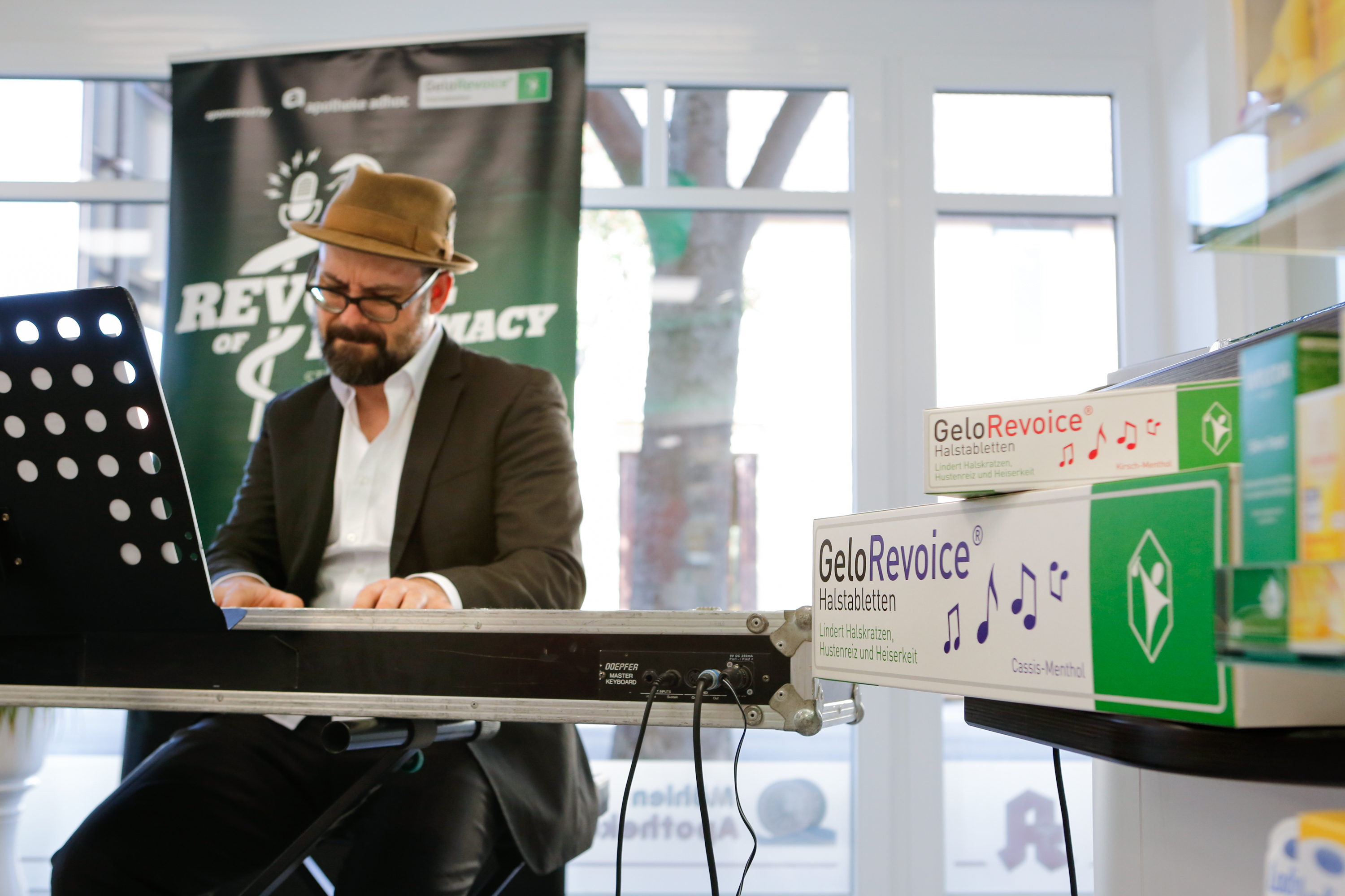 Nach Ladenschluss wurden eilig ein paar Regale zur Seite geschoben, damit in der kleinen Offizin genug Platz für die Bühne war. 30 Zuhörer, die sich aus dem Apothekenteam, Angehörigen und einigen Gästen zusammensetzten, lauschten gebannt den Liedern von Kim und ihrer Begleitung am Piano. „Es war ein gelungener Abend, auch die Organisation war einwandfrei“, so Akhavanpoor.
