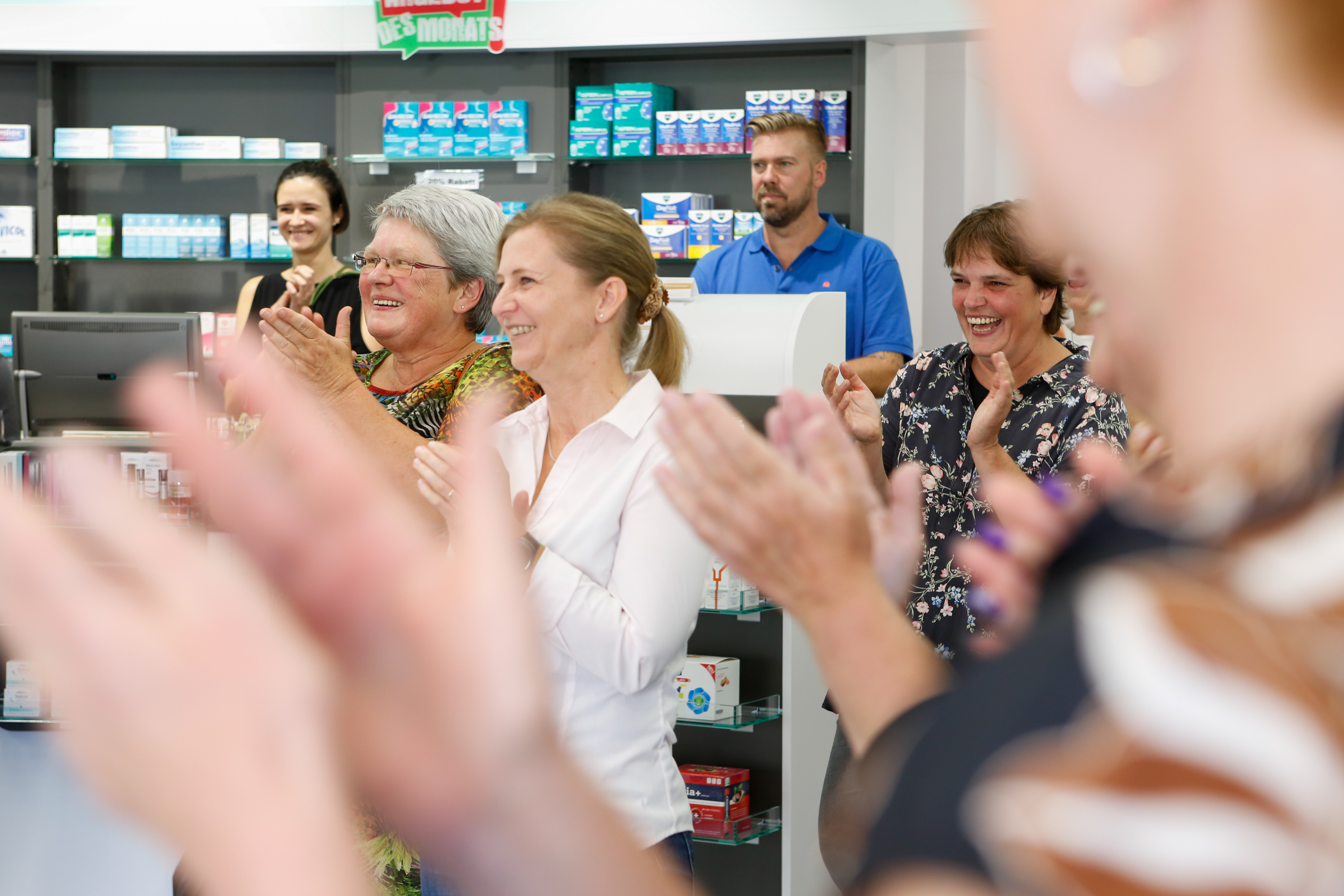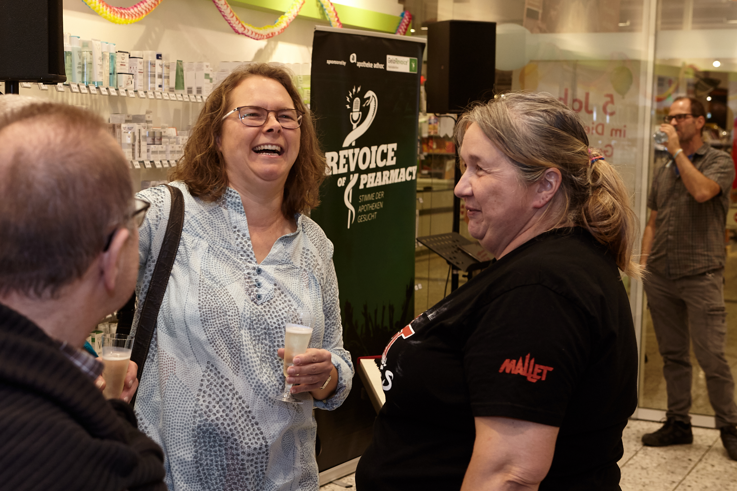 Noch lange nach Konzertschluss saß das Team mit Kim zusammen und tauschte sich über das Erlebte und den Alltag in der Apotheke aus. „Sie ist nicht nur eine tolle Sängerin, sondern auch ein super entspannter Mensch“, hält Akhavanpoor große Stücke auf die singende PTA. In der Apotheke im Globus gehe nun der normale Betrieb weiter – und das sei auch gut so: „Die ersten fünf Jahre waren sehr anstrengend und von einigen Umstrukturierungen geprägt. Doch nun ist alles abgeschlossen, wir haben uns etabliert und die Kunden kommen gerne zu uns“, so der Filialleiter.