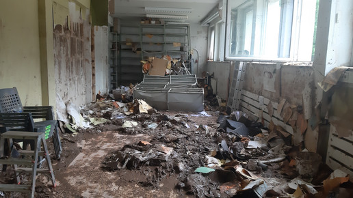 Auch wenn die Katastrophe nicht spurlos an ihr vorbeiging, versucht sie tapfer zu sein. „Es muss vorangehen, es hilft nichts, den Kopf in den Sand zu stecken.“ Das Wegräumen der Ordner, Büromöbel und -materialen sei komisch. „Hier haben Leute gearbeitet“, sagt sie. „Noch schlimmer wäre es, wenn es ein Privathaushalt gewesen wäre.“ Viele Menschen haben mit dem Unwetter alles verloren. Die Situation vor Ort sehe aus „wie im Krieg“, so die Angestellte. „Viele Häuser stehen nicht mehr.“