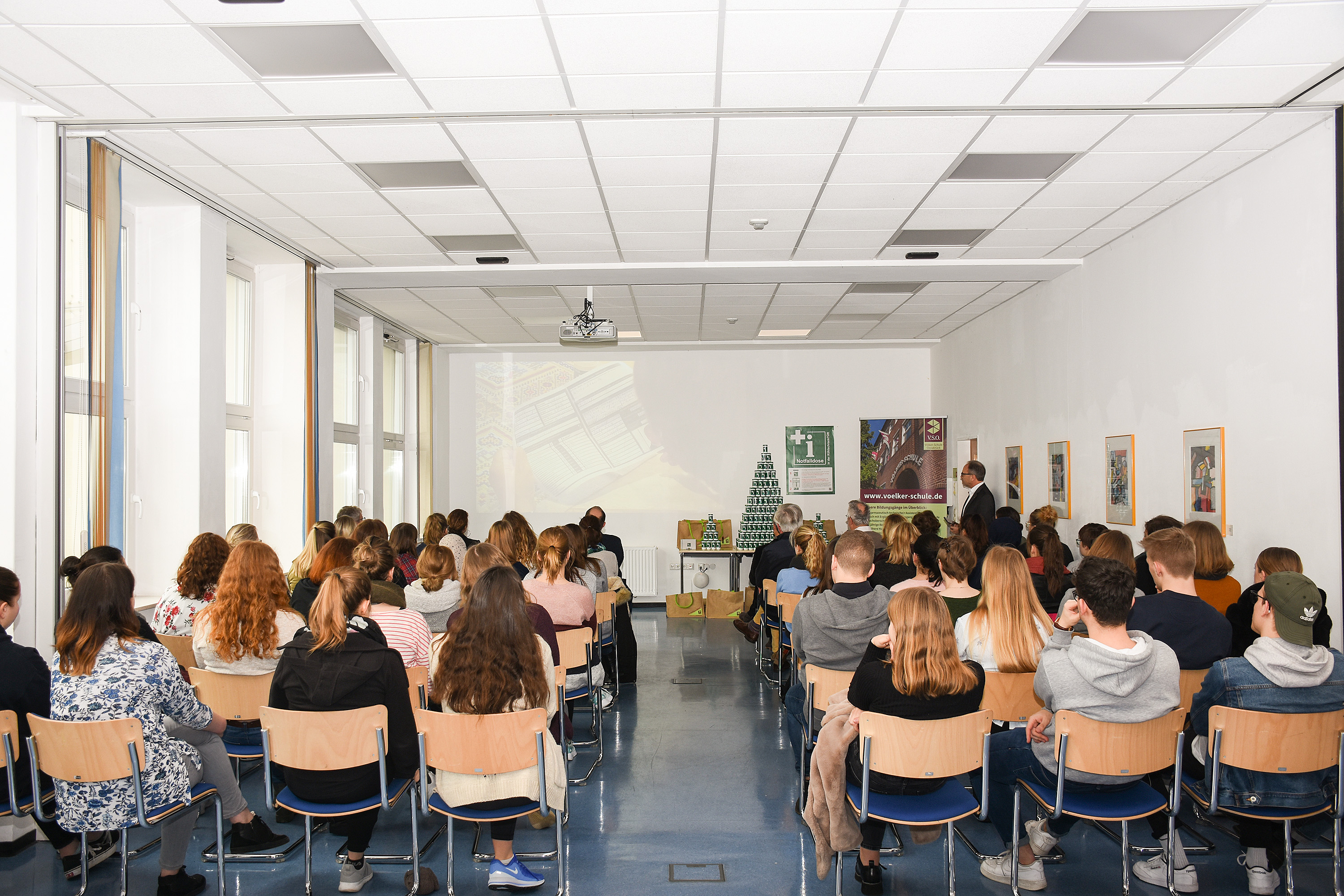 Im Februar wurden an der Völker-Schule 110 PTA-Prüflinge verabschiedet. Alle Absolventen hatten die Abschlussprüfungen erfolgreich bestanden. Seit der Gründung der Völker-Schule im Jahr 1977 wurden bis heute 3833 Absolventen erfolgreich ins Berufsleben verabschiedet. Fünf Klassen werden derzeit pro Jahrgang unterrichtet.