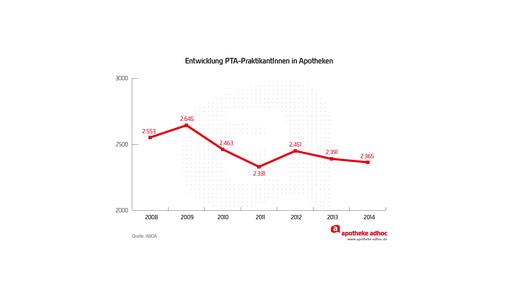 Auch die Zahl der Pharmazeuten im Praktikum (PhiP) ist rückläufig und erreichte zuletzt nur 85 Prozent des Wertes von 1993. Nach einem Tiefpunkt im Jahr 2009 mit weniger als 1300 PhiP stieg ihre Zahl zuletzt wieder leicht an und lag 2014 bei 1470. Bei den PKA ist ein Rückgang von 16 Prozent zu verzeichnen.