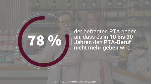 Aber in 10 bis 30 Jahren wird es laut 78 Prozent der befragten PTA den Beruf nicht mehr geben – sofern die Attraktivität des Berufes nicht gesteigert wird.