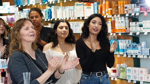 Die Apotheke in Köln ist einer von zehn Standorten, an dem Kim für Team und Kunden singt. Zuvor sang die PTA in Elmshorn. Iris Dürr hatte sich beworben, weil sie sich mit dem Konzert bei ihrem Team bedanken wollte. In schwierigen privaten Zeiten mit mehreren Schicksalsschlägen standen ihre Kollegen immer hinter der PTA.