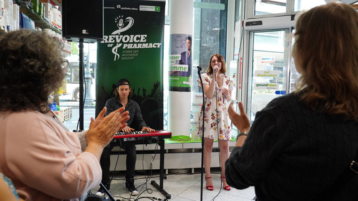 Mitte Juni war es dann soweit. Die PTA Kim Lohmann trat in der Merlin Apotheke auf. „Es war so toll, damit haben wir nicht gerechnet“, freut sich Altuntas-Erdag. „Wir hatten alle soviel Spaß, das Konzert hier in der Apotheke ist sehr gut angekommen.“ Eingeladen waren Kunden, Familienmitglieder und Freunde. Auch von der Straße seien während der Show Passanten dazugekommen.