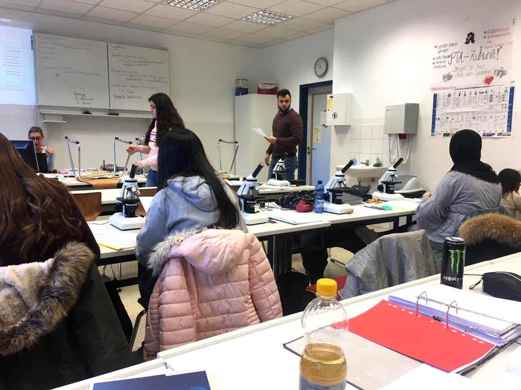 Zwei Klausuren stehen diese Woche an. Adina Bürkel ist im Lernstress. Die PTA-Schülerin muss für Botanik und WiSo (Wirtschaft und Sozialkunde) büffeln. „Das ist eine harte Nummer“, sagt die 18-Jährige. Besonderen Spaß hat sie mit ihren Freundinnen im Labor – ihrem Lieblingsplatz. In der vergangenen Woche gab es eine Erfolgsmeldung: Adina konnte erstmals in einem Beratungsgespräch punkten. PTA LIVE ist mit dabei und begleitet den PTA-Nachwuchs in der Bernd-Blindow-Schule in Heilbronn.