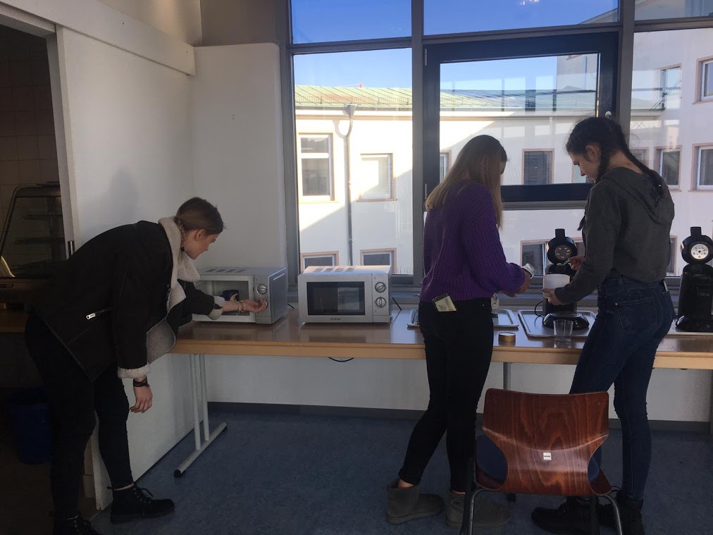 Zweiter Lieblingsort von Adina und ihren Freundinnen Kristin und Tanja ist der Pausenraum. „Auf der Terrasse hat man einen wunderbaren Blick über Heilbronn.“ Dort treffen sich die verschiedenen Klassen. „Ich habe mich vergangene Woche mit einer Schülerin aus der Parallelklasse angefreundet.“ Mit den Auszubildenden im Bereich Physio- oder Ergotherapie, die ebenfalls an der Schule lernen, hat das Trio weniger zu tun.