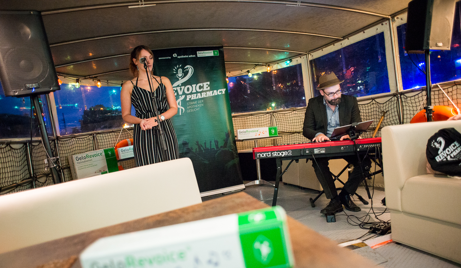 Vocal-Workshop, Tag 1. Pünktlich um 9.30 Uhr steht das Großraum-Taxi vor dem Hotel in Friedrichshain. Die Reise geht durch Berlin in die Hansa-Studios. Ein Kamerateam begleitet die Finalisten von Revoice of Pharmacy, Sängerin Bahar Kizil bittet zum Atemtechnik-Training.