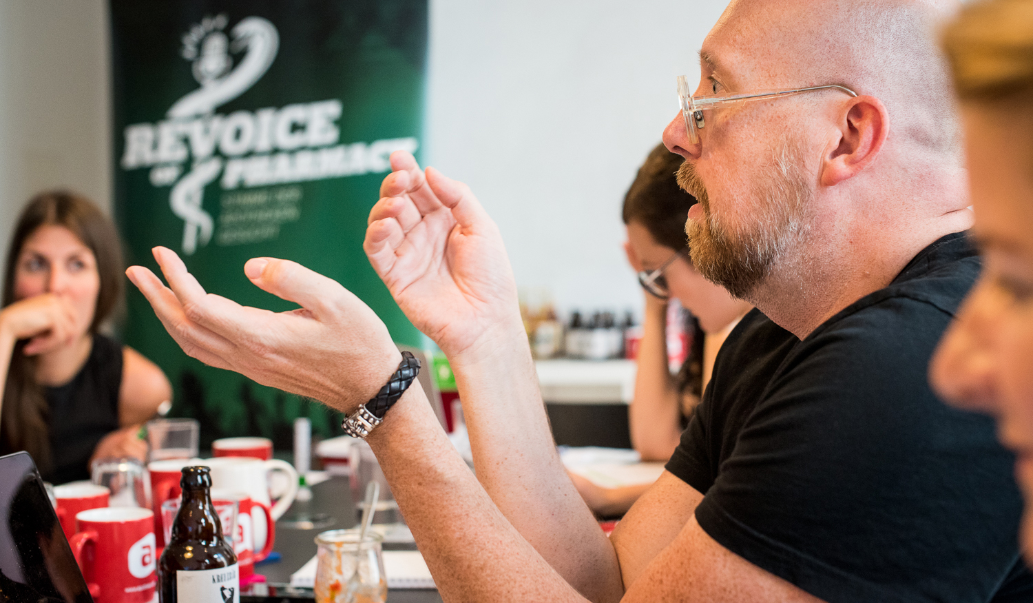 Zweiter Mann bei „Revoice of Pharmacy“ ist Axel Meyer aus Berlin. Der Inhaber der Alten Spree Apotheke sang früher viel und würde künftig gerne wieder mehr Zeit dafür haben. „Bei Axel spüre ich seine Leidenschaft für die Musik! Er ist in den vergangenen Jahren, durch Beruf und Familie, wenig dazu gekommen diese auszuleben. Umso mehr freue ich mich darauf ihm einen musikalischen Weg aufzuzeigen, der ihn weiterbringt und hoffentlich dranbleiben lässt“, so Hafemann.