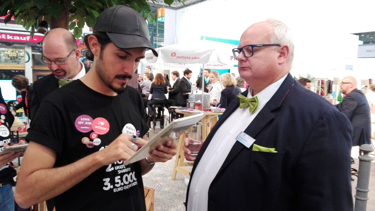 Rein in die Box: Am Stand von APOTHEKE ADHOC konnte sich die Besucher nicht nur mit Smoothies und Brausepulver fit machen und sich über APOTHEKE ADHOC, PTA Live, APOCLASS und APOSCOPE informieren, sondern auch ablichten lassen: Wer in die Fotobox kam, hat die Chance auf 5000 Euro. Es bleibt weiterhin spannend. Stichtag ist der 30. September – der glückliche Gewinner des „Apothekergehalts“ wird dann informiert.