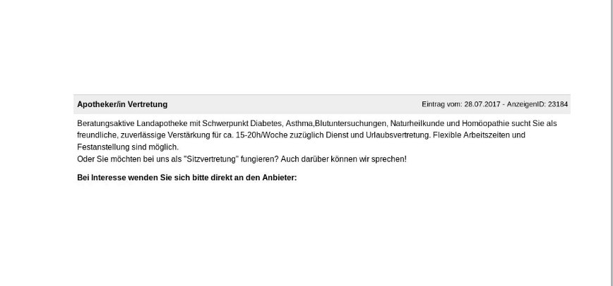Älterer Apotheker, „alte Schule“, selbst Inhaber, länger außer Dienst, ohne EDV- und Computererfahrung aber fit, „sitzt“ Ihre Vertretung aus. Diese Anzeige konnte man in den Stellenangeboten eines Standesmediums vor wenigen Wochen lesen. Für seine Dienste wollte der Kollege 600 Euro für eine 42 Stundenwoche und eine kostenfreie Unterkunft haben.