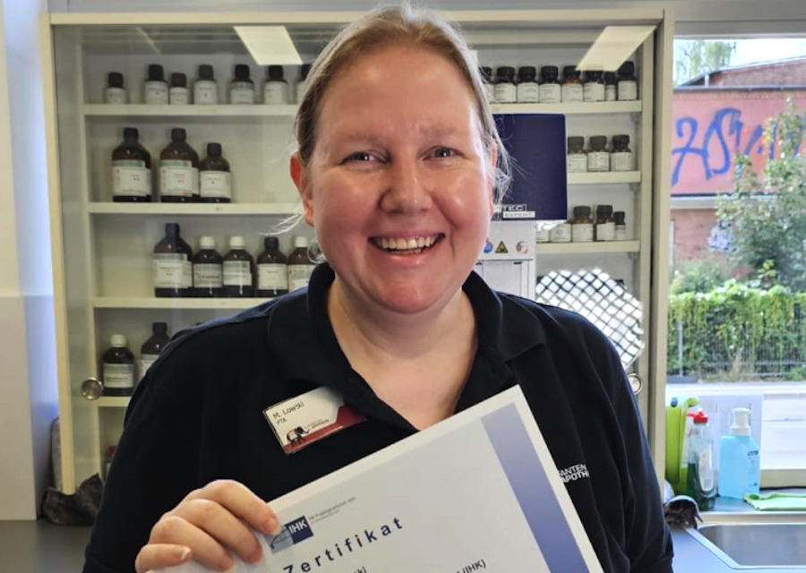 Apotheken durchleben stressige Zeiten – das spüren auch viele Angestellte. Wie man am besten einen kühlen Kopf bewahrt, weiß Melanie Lowski. Die PTA der Elefanten-Apotheke in Hamburg absolvierte eine Fortbildung bei der IHK und steht künftig nicht nur ihrem Team mit Rat und Tat zur Seite.